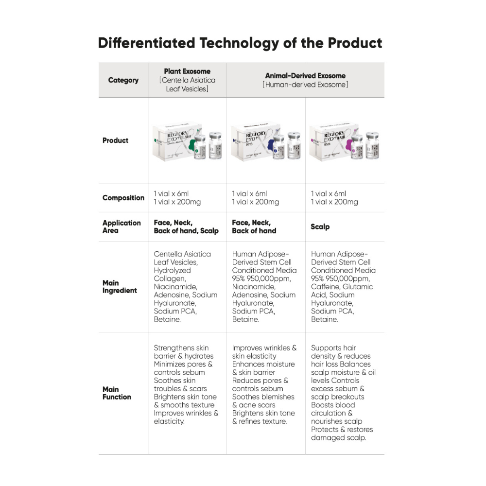 - Tecnología de Exosomas Derivados de Plantas: Impulsada por vesículas de Centella Asiática, un complejo de exosomas de origen vegetal elegido por su apoyo calmante y enfocado en la recuperación de la piel.